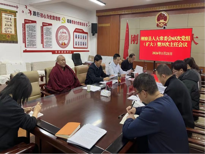1月21日,刚察县人大常委会党组书记周有全主持召开中共刚察县人大常委会65次党组(扩大)会议暨35次主任会议,副主任文选、科才·洛桑索巴尖措参加。