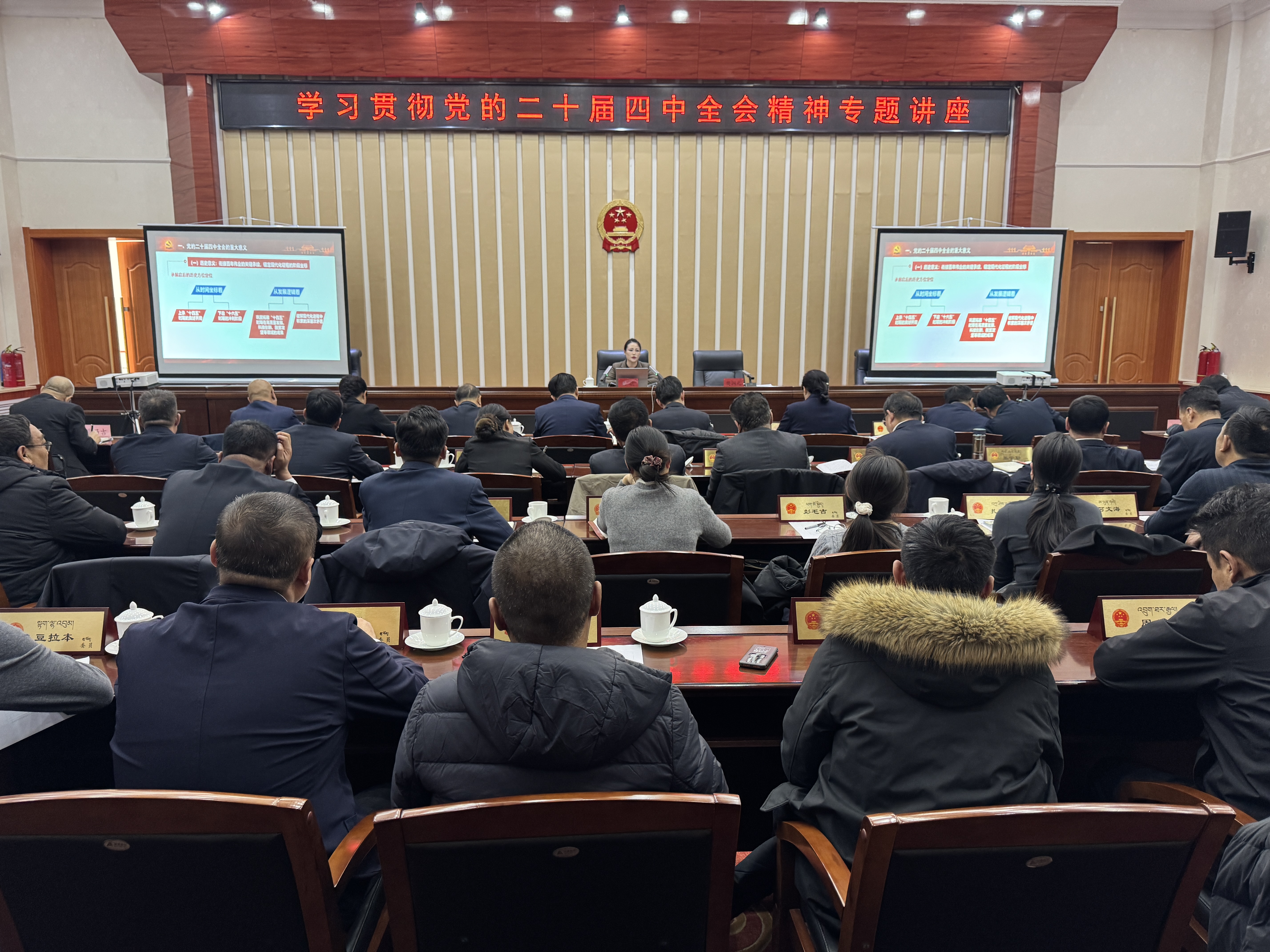 会议举办学习贯彻党的二十届四中全会精神讲座,邀请州委党校讲师巴蕊作了题为《接续奋进中国式现代化新征程的宏伟蓝图》的专题辅导。