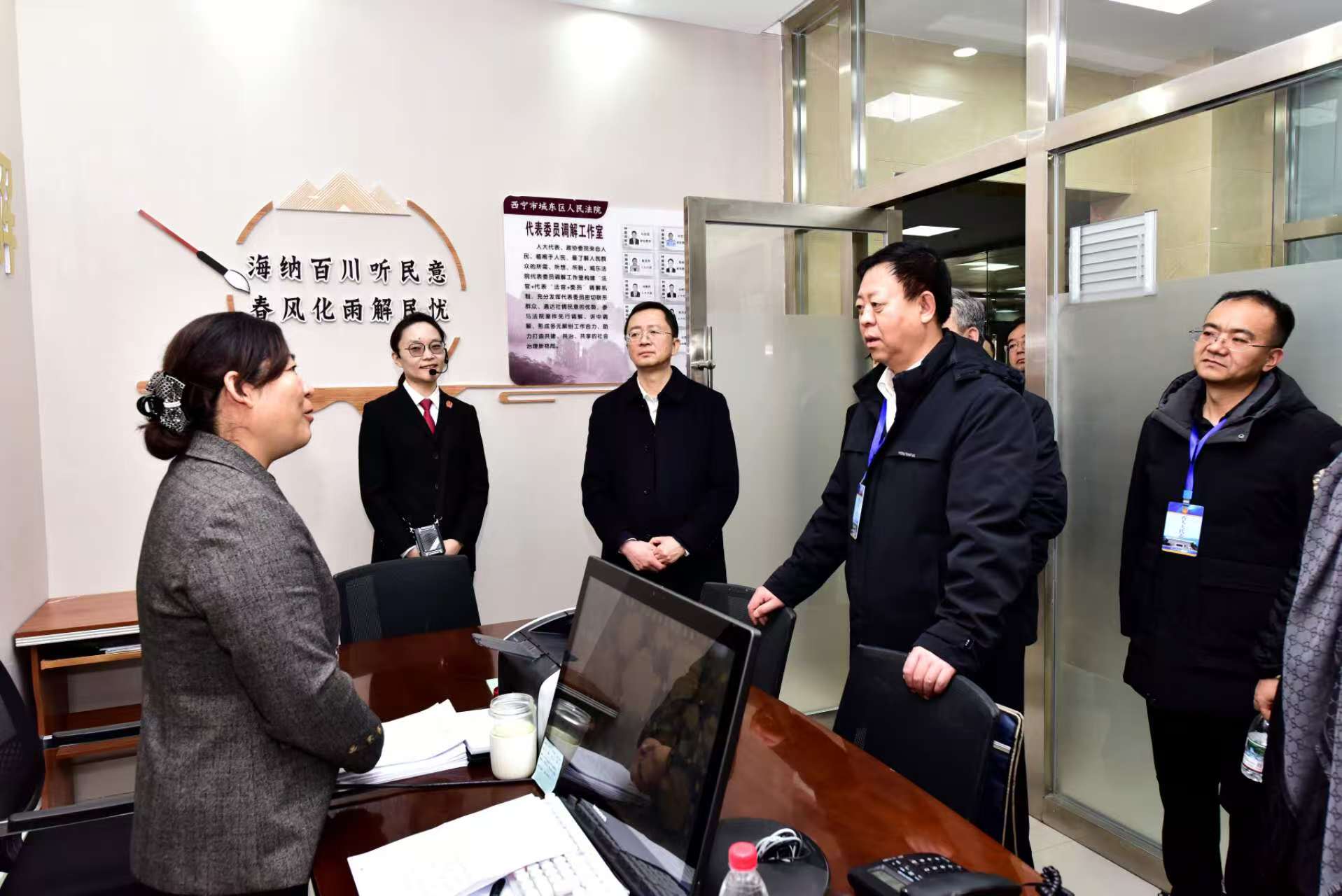 12月17日,青海高院邀请在青部分全国人大代表、政协委员和省人大代表、政协委员赴西宁市城东区综治中心、区人民法院开展集中视察活动,主动接受代表委员监督,切实将“精、细、常、实、新”的代表委员联络工作要求落到实处。省人大代工委主任刘志德,青海高院党组副书记、副院长魏文超参加活动。