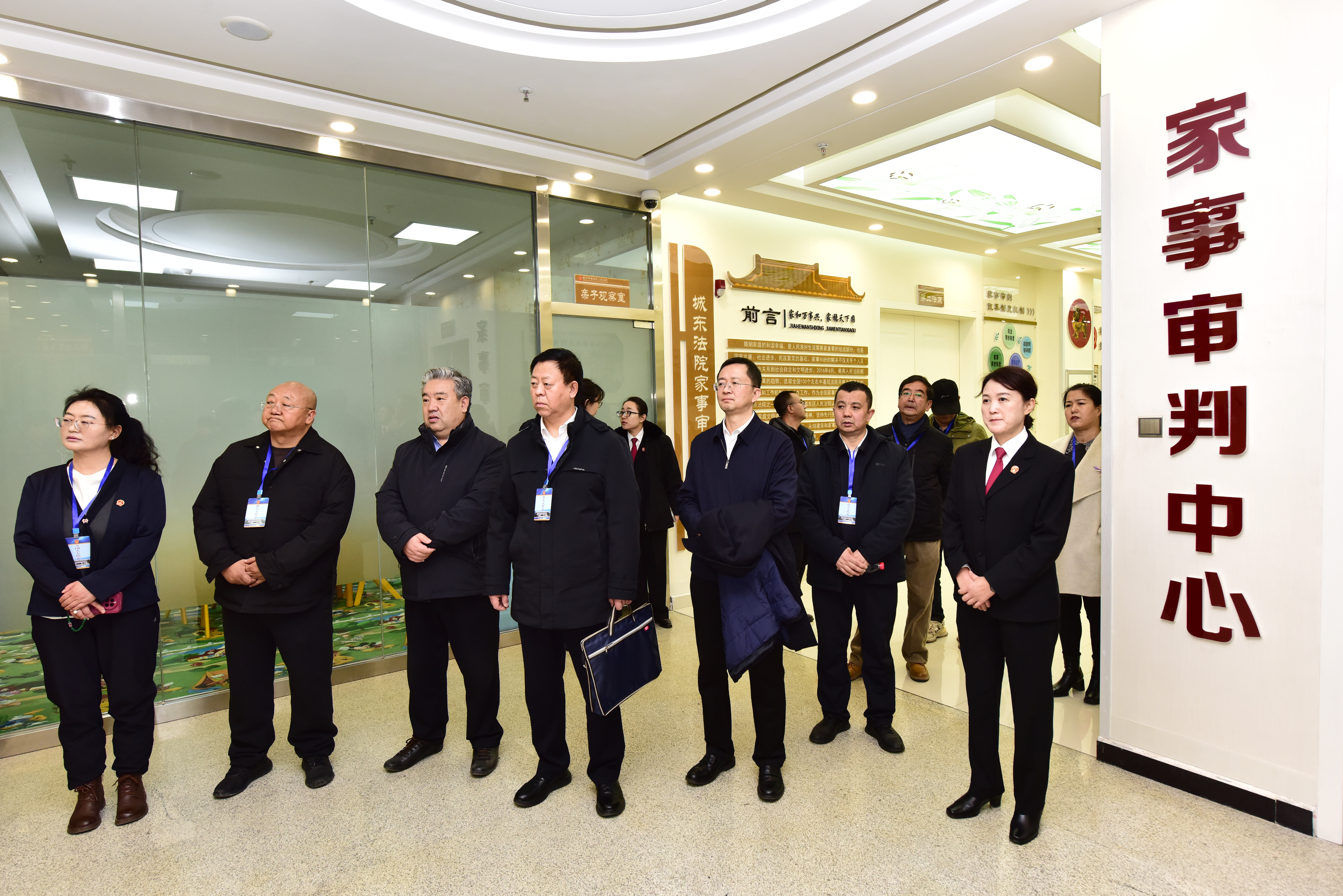 在城东区人民法院,代表委员们实地参观了“客厅式”家事法庭、“圆桌式”少年法庭、心理疏导室、亲子活动观察室等特色功能区,近距离感受柔性司法的人文温度。听取了少年家事审判工作汇报,对创新开展的涉未成年人“三审合一”审判模式、组建专业审判队伍、落实“四优先”办案机制等举措表示赞赏,对法院通过“谈心式”调查、“拉家常式”调解实现高调撤率,持续开展回访帮教、“订单式”普法等延伸司法服务取得的良好成效给予充分肯定,认为城东区人民法院的实践生动诠释了“司法为民、公正司法”的初心使命。